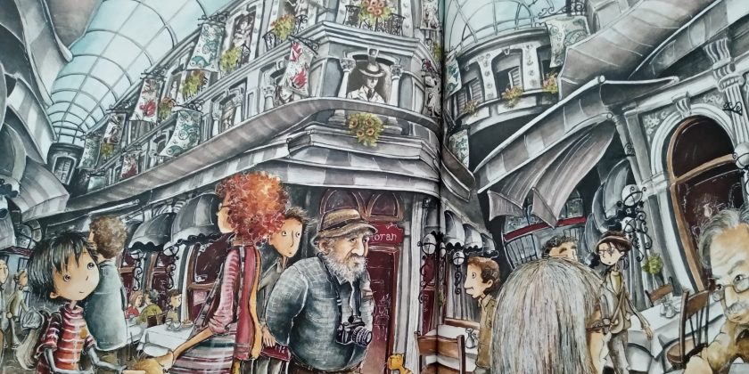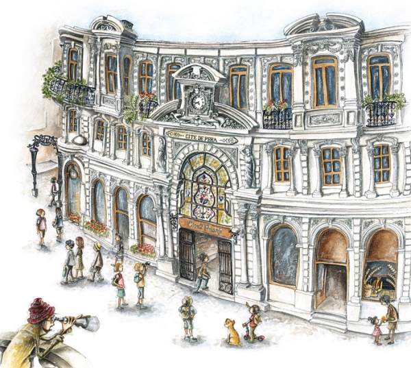 Çizimler olağanüstü. Müthiş detaylar var. İlk sayfada Sinan’ın elindeki deftere gösterilen özeni görünce her sayfaya dikkatle bakmaya başladım. Çiçek Pasajı’da Ara Güler’le, bir plakçı tezgâhında Nâzım ve Münir Nurettin’le, duvardaki bir afişte Abidin Dino ile karşılaşılan çizimlere hayran kalmamak mümkün mü? Her sayfasında Ayşe İnan Alican’a kocaman teşekkürler yolladım. Resimlediği diğer kitapları da hemen listeme ekledim, ki kendisi bu kitaptaki çizimlerle 2011 IBBY Onur Listesi’ne seçilmiş.