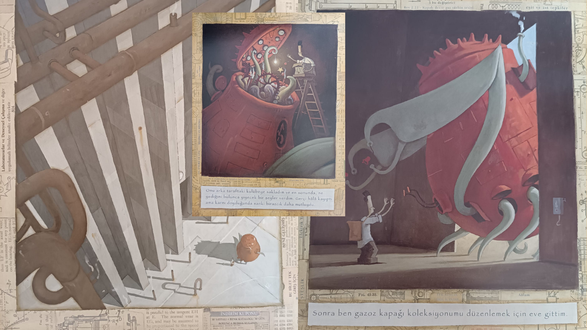 1. Ne zamandır vakit ayıramadığım bloğuma hemen dönmek için yüreklendiren yorumunuz için çok teşekkür ederim. Hiç tanışmadığım insanlarla aynı kitaplara aynı tebessümle baktığımı bilmek öyle mutlu ediyor ki beni. Shaun Tan’a, griliklerde kaybolmuş insanların karşısına çıkıveren garip makinelere, duvarlarda açan çiçeklere…
