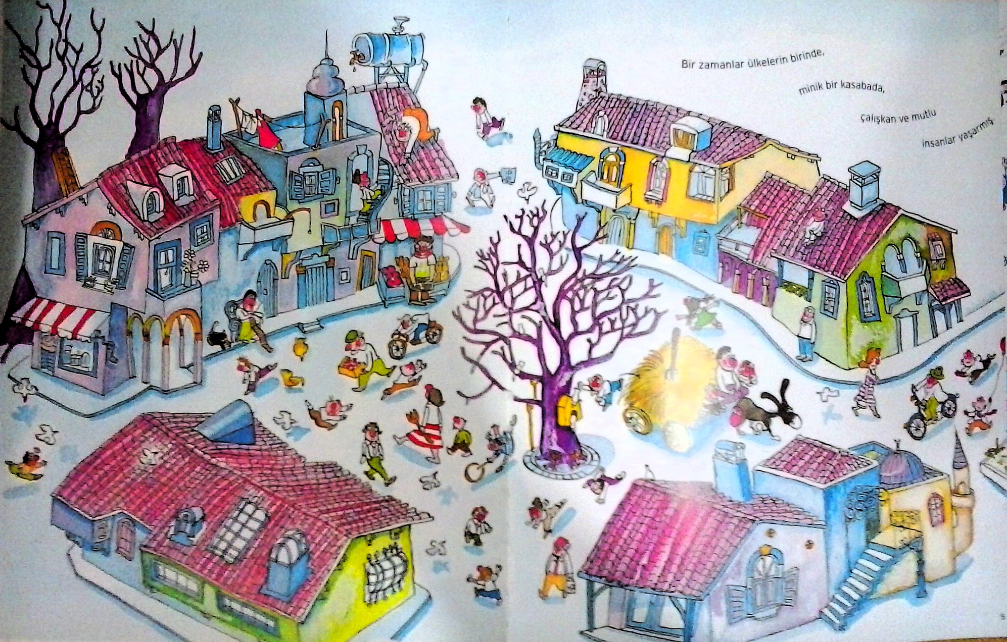 Minik bir kasaba düşleyin; sokaklarında şaşkın, üzgün ya da düşünceli insanların dolandığı. Gülümseyenler de var elbet, onlar öyle çok ki hem de. İşlerine gidiyor, işlerinden dönüyorlar. Evinin önünde oturup etrafı izliyor kimi, kimi bisikletiyle geziye çıkıyor. Her şey yolunda görünüyor yani. Görünüyordu demeliyim belki de çünkü günlerden bir gün hiç beklenmeyen bir konuk ziyaret ediyor bu minik kasabayı. Hızlı mı hızlı, güçlü mü güçlü bir konuk bu gelen. Ziyaretini sona erdirirken de neye uğradığını anlamayan kasaba halkını ve her durumda gülümseyebilen kedileri katıp yanına, devam ediyor yoluna. Bu konuğun adı rüzgâr ve gökyüzüyle buluşturduğu kasaba halkını bir hayli korkutuyor. Kasabalılar başlarına geleni anlayamayıp bağırıyorlar önce, sonra yükseklerden gördükleri şehirler, ülkeler çekiyor dikkatlerini, seyre başlıyorlar. Bulduğu topla oynamaya başlayan oluyor, ip atlayan hatta sandalyesine kurulup kitap okuyan da, ama kolay değil alışmak uçmaya, tükenmiyor soruları.