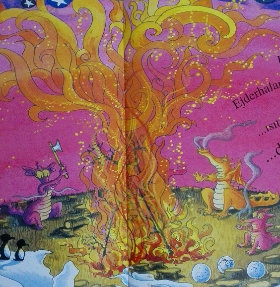 Ben sen gibi bulduğunu tüketmeye doyamamışlar bir türlü. Üretmeden tüketmek çok tatlı gelmiş onlara da, dur durak bilmemişler bu yüzden. Gerek var mıydı diye hiç düşünmeden toplamışlar gözlerine çarpanı yamaçlarına, aynı hızla da gözden düşürmüşler ellerindeki. Alevler ve çöpler sarmış etraflarını. Çok gürültü yapmayı eğlenmek sanmışlar,ne yazık. Gerçi çok gürültü diğer eğlence ritüellerini düşününce pek hafif kalırmış. Şenlik ateşi için orman kesermiş ejderhalar.
