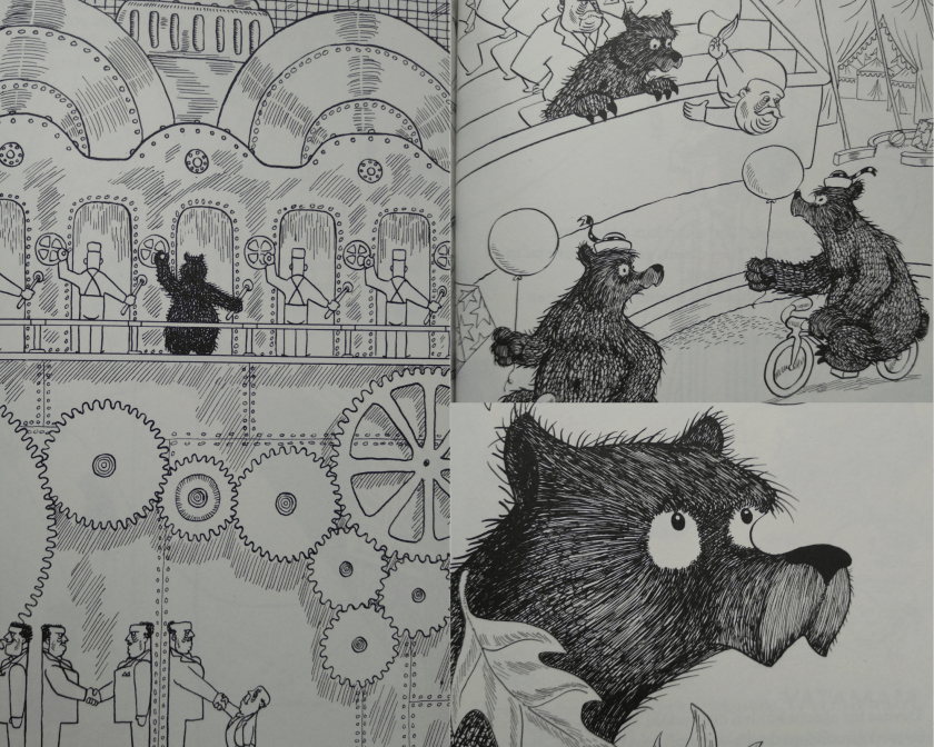 Alice’den ya da Samsa’dan bahsetmeyeceğim, onların başına gelenlerden çok farklı kahramanımızın başına gelenler ama kim bilir belki de biraz aynı? Ben anlatayım, siz karar verin en iyisi. Uzun bir kış uykusuna yattı bir ayı. Ve uyandı bahar geldiğinde, bambaşka bir dünyaya. Mağarasının üzerinde türlü çeşit makine harıl harıl çalışmakta. Ve çalışmakta yüzlerce işçi makinelerin başında. Karşılaştı bir koridorda işgüzar bir adamla, inandıramadı onu kendisinin bir ayı olduğuna. Bu binada pek çok yetkili vardı, o yetkililerin pek çok yardımcısı, her birinin de birer odası. Elbette uzadıkça uzayan unvanlar vardı bir de kapılarda. Mevkileri değişse de ağızlarından dökülen sözler hiç değişmedi; “Hayır,” dediler ayıya, “Sen bir ayı değil, bir insansın ve hemen makinenin başına geçmelisin.” Odalardan odalara derken şehrin ortasındaki çadırlara ve kafeslerin ardına uzandı yolcuğu ayının, bir tek derdi vardı; inanadırabilmek bu insanları kendisinin bir ayı olduğuna. Bu maceranın nasıl sonlandığını ancak okuru bilir. Ne dersiniz ayı kavuştu mu mağarasına yoksa sonunda kendisi de inandı mı bir insan olduğuna?