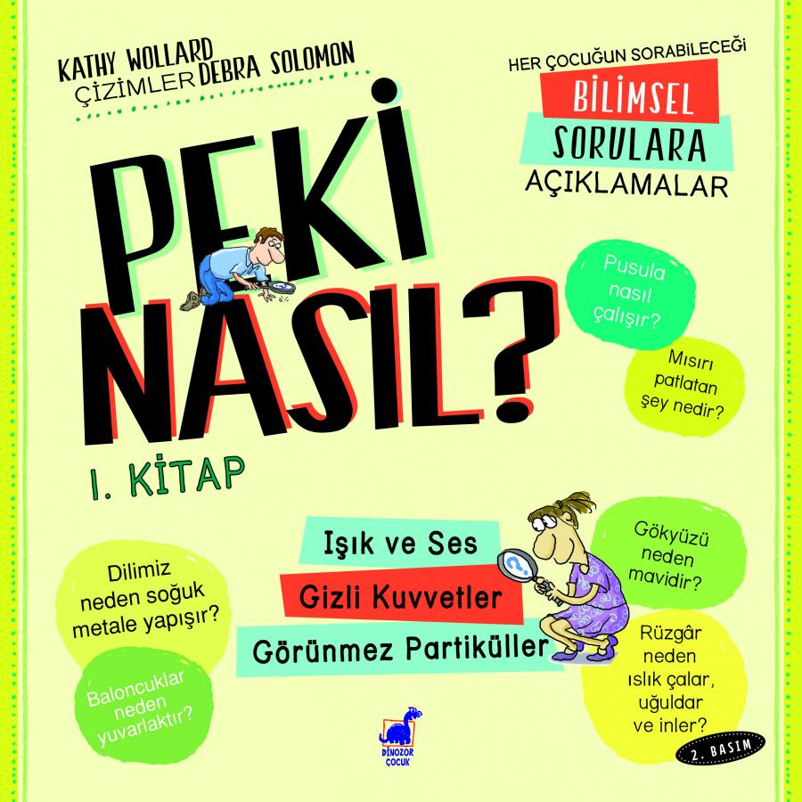 Çocukken dünyaya karşı çok meraklıyız. Her an yeni bir şeyle karşılaşıp, yeni bir bilgiyi ekliyoruz zihnimize ve hayat temelde iki sorunun etrafında şekillenmeye başlıyor. Gökyüzü mavi, kaşlarımız var, dinozorların isimleri upuzun: Neden? Saçımız uzar, balıklar su altında nefes alır ya da taş suda kayar: Nasıl? İşte günün birinde, farklı ülkelerden çocuklar, zihinlerindeki bu soruları kağıda dökmüş ve Newsday isimli gazetenin How Come? köşesine yollamış. Bu köşeye gönderilen mektuplara verilen yanıtlardan oluşan ilk Peki Nasıl? kitabı ise 1993’te Birleşik Devletler’de basılmış, o günden beri farklı ülkelerde, yeni bilimsel gelişmeler ışığında güncellenerek, yayımlanmaya devam ediyor. Peki Nasıl?’da yanıtlanan sorular gördüğümüz, düşündüğümüz, hissettiğimiz her alana temas ediyor. Bu temasta banyoda şarkı söylerken sesimizin nasıl değiştiği, kilo verdiğimizde yağların nereye gittiği, elektrik tellerine oturan kuşların nasıl çarpılmadığı, yıldızların nasıl göz kırptığı gibi eğlenceli sorular da var, görünmediği hâlde maddeyi oluşturabilen atomların sırrı ya da ormandaki maymunların neden insana dönüşmediği gibi tükenmeyen ‘varoluşsal sancılar’ içerenler de. Ancak Peki Nasıl? sadece bir soru-yanıt derlemesi değil; insanlık ve bilim tarihine dair temel bir birikim de sunuyor. Kathy Wollard’ın yazdığı Peki Nasıl? Her Çocuğun Sorabileceği Bilimsel Sorulara Açıklamalar, Debra Solomon tarafından resimlenmiş. Çeviris Serpil Aras’a ait kitap Dinozor Çocuk tarafından yayımlanıyor.