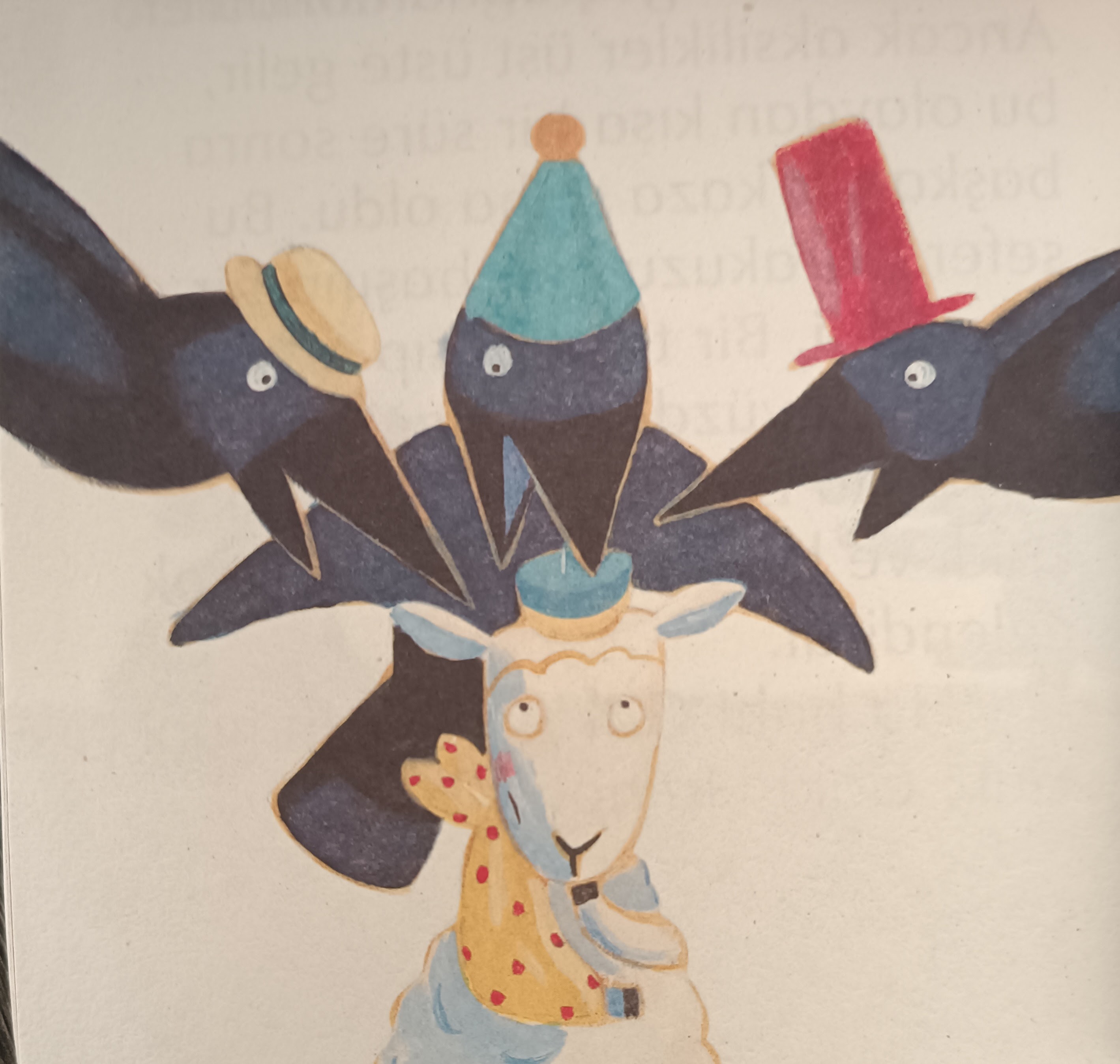 İkinci kitapları Akkuzu Karakuzu ve Kargalar’da kuzuların başı aksiliklerle ve aksiliklerden çok daha aksi kargalarla dertte! Gün geçmiyor ki evden uzaklaşan bir koyunun neşeli günü tatsızlıkla sonlanmasın. Önce Kar, sonra Karakuzu. Çözülmez dertler sanmayın başlarına gelenleri, hemen her gün bizlere de olur aynıları. Ama işte dalda üç çenebaz karga. Gözleri üzerinde kuzuların, işler başlamasın aksi gitmeye, başlıyorlar kıkır kıkır gülmeye. Dayanılmaz oluyor kimi zaman şakaları. Ne yapmalı da başlarından savmalı şu haylaz kargaları? Rengârank koyunların vardır elbet ceplerinde planları.