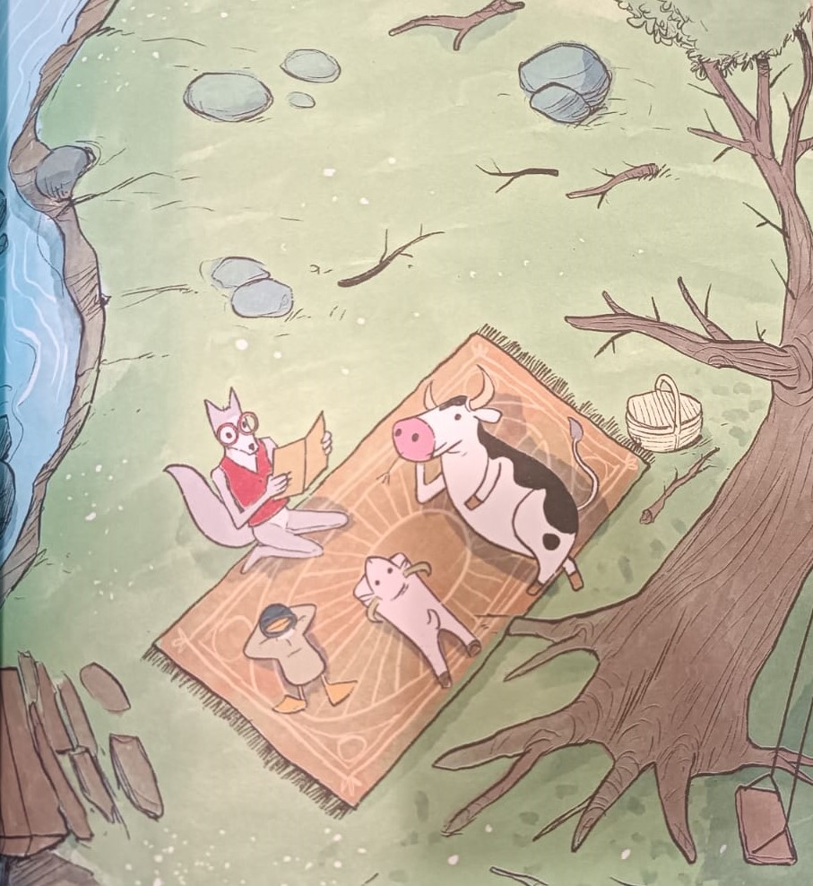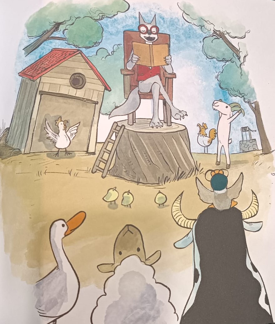 Ama işte bazen işler ezberimizdeki gibi gitmez, inekler, domuzlar, hatta minicik ördekler bile korkmadılar kurdun tehditlerinden. Ellerindeki kitaplar sanki başka diyarlara götürmüştü onları, hayal gücünün peşindeki gezintilerine mâni olacak tek bir çıtırtıya yoktu tahammülleri. Şaşkına döndü Kurt cahilliğini yüzüne vuran çiftlik hayvanlarının cüreti karşısında. İşte günlerden o gün, zorba kuyruğunu kıstırıp düşünmeye koyuldu ve masal yeniden yazıldı.