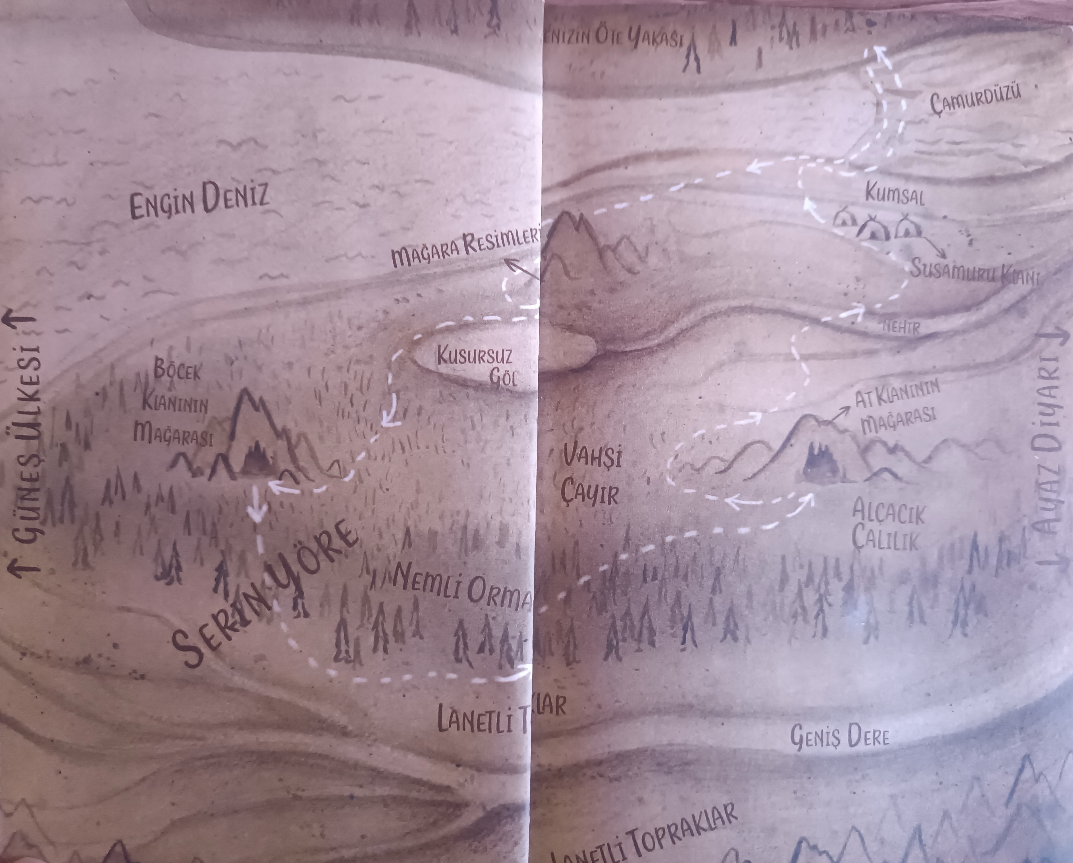 Kahramanımız için bilinmeyen diyarları bol bir evrene adım attığımızı kitabın kapağını açar açmaz anlıyoruz. Solunda Güneş Ülkesi, sağında Ayaz Diyarı olan bir haritanın orta yerindeyiz. Vahşi Çayır, Engin Deniz, Lanetli Topraklar ve nicesi. Diyarların üzerinde orada yaşayan klanların adları. Gezip görecek ne çok yer, tanıyacak ne çok insan var, değil mi? Ama hemen serüven hülyalarına kapılmamalı, Atta’nın zamanında yolculuklara çıkmak hiç de kolay değil. Denizin Öte Yakası’nı görmeye niyet etmeyi bırakın, akşam yemeği bulmak için klandan ayrılanlar dahi dönemiyor bazen. Küçücük bir sıyrığın, bir yaprak ucunun insan öldürmesi mümkün çünkü Taş Devri’ndeyiz.